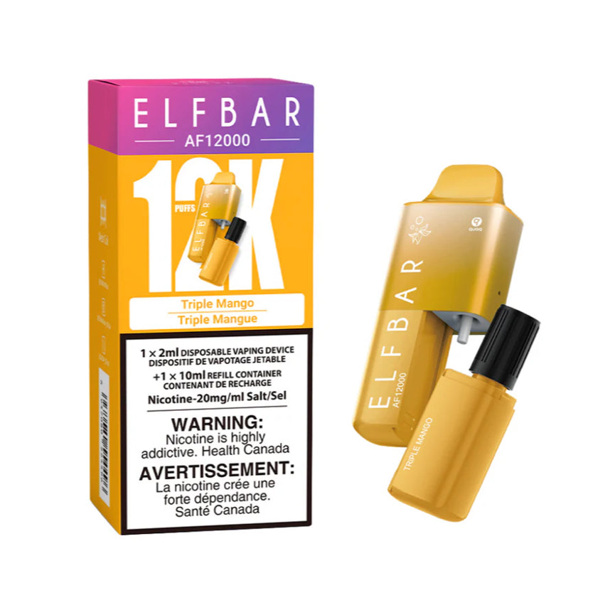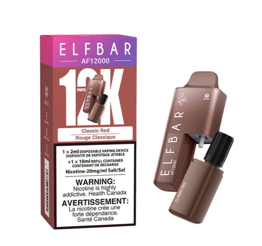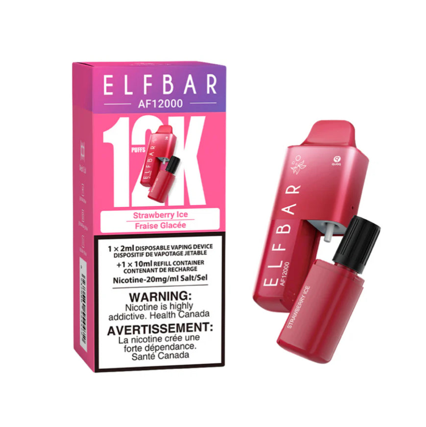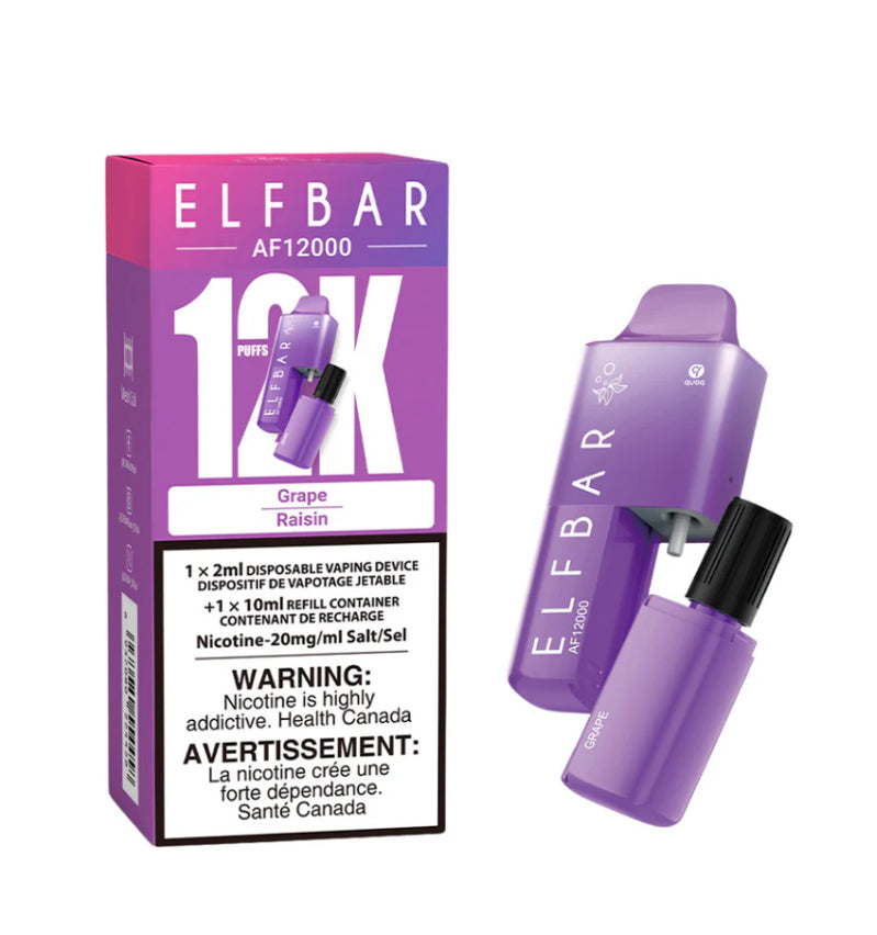 The ELF Bar AF12000 Disposable Vape 12K Elfbar is designed to deliver up to 12,000 puffs, the AF 120000 Disposable Vape Comes pre-filled with 2.0ml of E-liquid, ready for immediate use. Includes an additional 10ml E-liquid refill tank, significantly extending the device’s usage without the need for frequent refills. Containing 20 mg/ml of nicotine. AF12k is Ideal for users who require a strong nicotine hit.