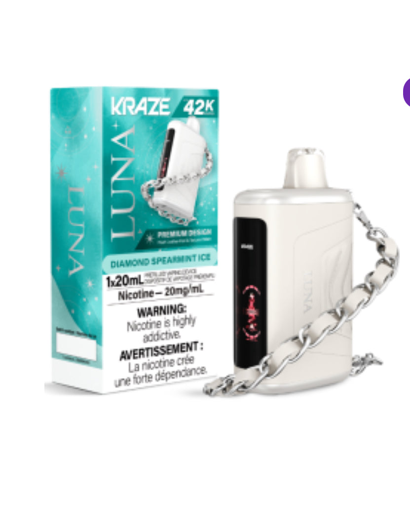 The Kraze Luna Disposable Vape is the ultimate choice for those seeking long-lasting performance and a premium vaping experience. With up to 42,000 puffs and 20mL of vape juice, this sleek device is powered by an 820mAh type-C rechargeable battery for convenience and reliability. Featuring a 2-in-1 airflow switch, users can choose between normal mode for smooth hits or boost mode for a more intense experience. Designed with a luxurious leather-textured finish, the Kraze Luna offers comfort, style, and quality all in one. Explore the Kraze Luna and discover why it’s the top choice for vapers looking to elevate their experience.