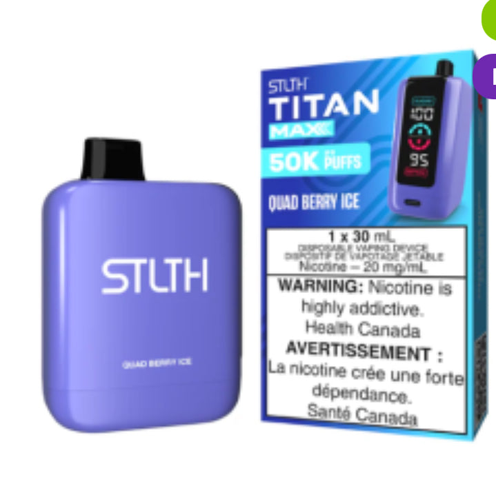 With its impressive capacity of 30 mL of e-Liquid, it delivers up to 50,000 puffs, the STLTH TITAN Max features an advanced Quad Coil, utilizing four heating coils, which not only enhances the flavour but also provides a stronger, more satisfying hit making it a top choice for those looking for both longevity and a powerful vaping experience.